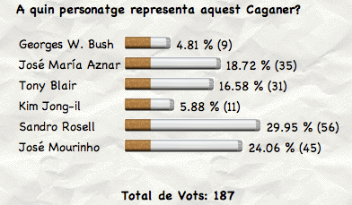 He votat l’enquesta però he hagut de repensar molt el sentit del meu vot. L’altra bloc oferia un munt d’informació i imatges “a la vista” amb un disseny seriós i simpàtic alhora, és veritat que aquest resulta més auster, més directe al post i que tot i aportar, suposo, les mateixes informacions i enllaços de moment m’ha costat molt anar-los trobant. El meu vot hauris d’haver estat en blanc o nul, però no m’oferies l’opció. Al final crec que estat bo, però no descarto tornar a votar en sentit contrari…