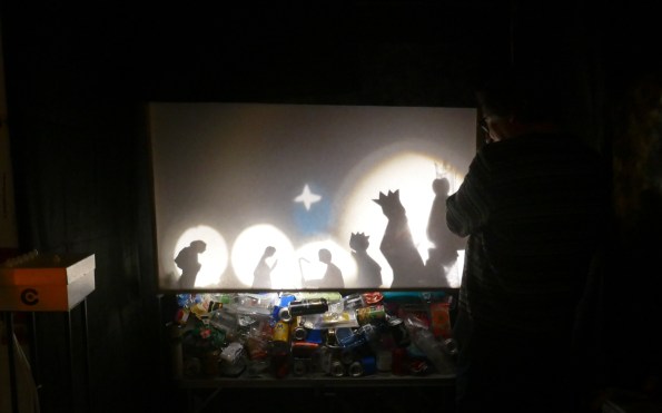 OMBRES XINESES. Per contemplar el tercer pessebre cal endinsar-se al bell mig de la ciutat. Al primer pis de l’edifici assenyalat ens espera la darrera obra que es presenta a concurs. Un espectacle inspirat en el teatre d’ombres xineses.