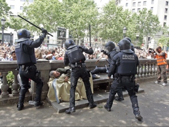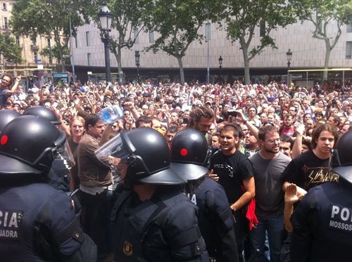 , enmig de milers i milers d’eslògans diversos, alguns dels quals acusaven els mossos mentre que d’altres els convidaven a afegir-se pacíficament a les concentracions. He pogut veure també equips de televisió de Suècia i d’altres països. Durant l’estona que he estat al centre neuràlgic del Cap i Casal només he vist dos polític, en Joan Herrera i en Ricard Gomà; en tot aquest procés l’encara alcalde, Jordi Hereu, una vegada més ha mostrat la indignitat amb què exerceix el càrrec, fent-se fonedís des del primer moment que van aparèixer reclamacions; ara ja no ha de demanar ni que el votin, cobrar a final de mes i visca la Pepa!